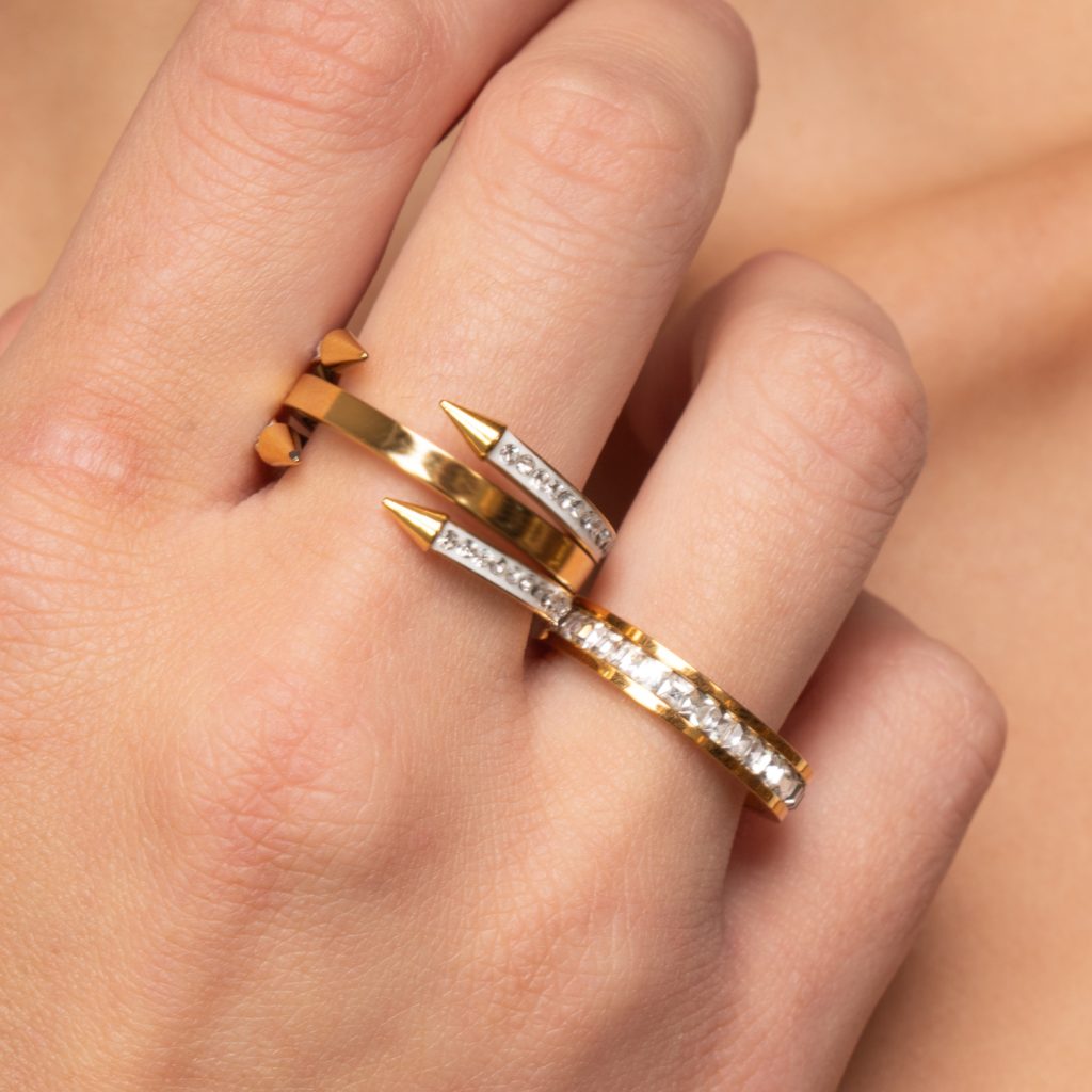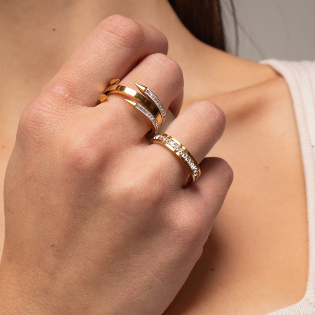 Anello Tria in acciaio placcato oro
