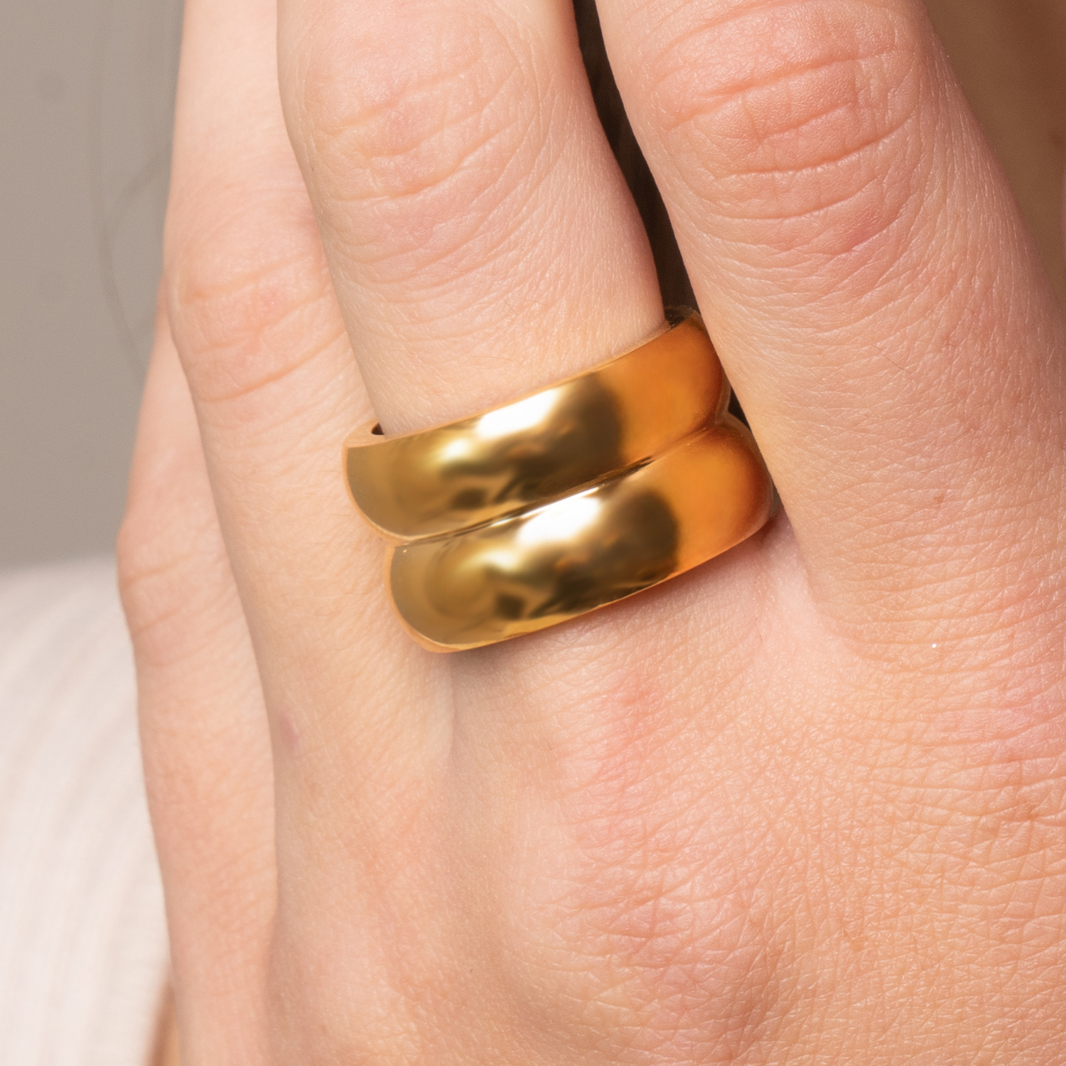 Anello Double in acciaio placcato oro
