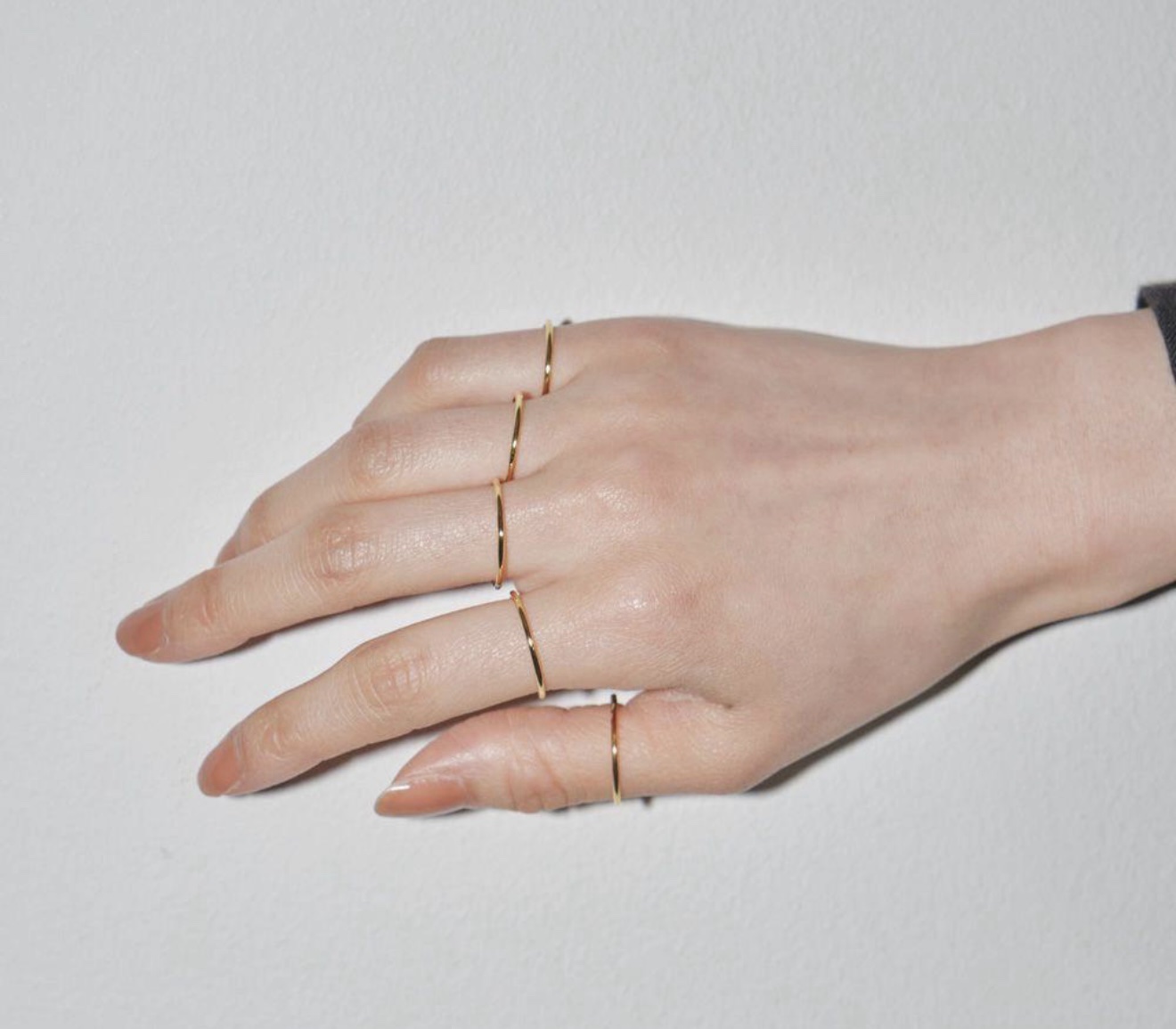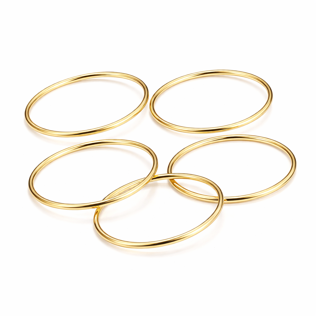 Il set contiene 5 fedine sottili dal design minimal, ideali da indossare insieme o singolarmente.