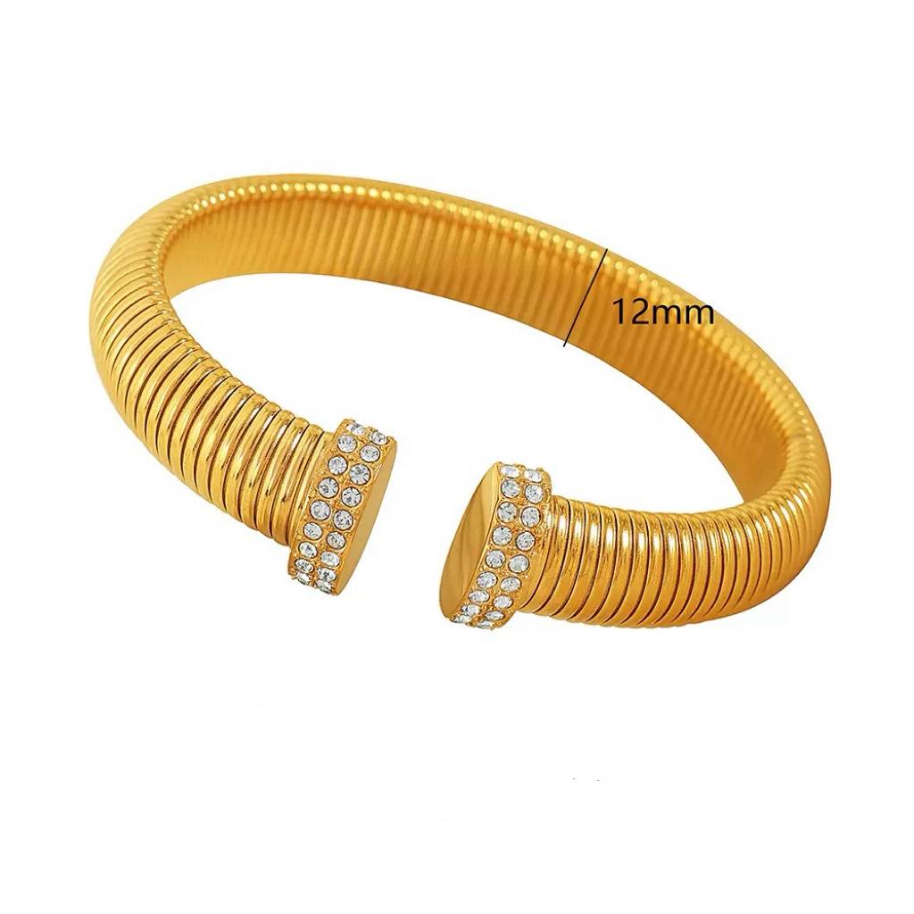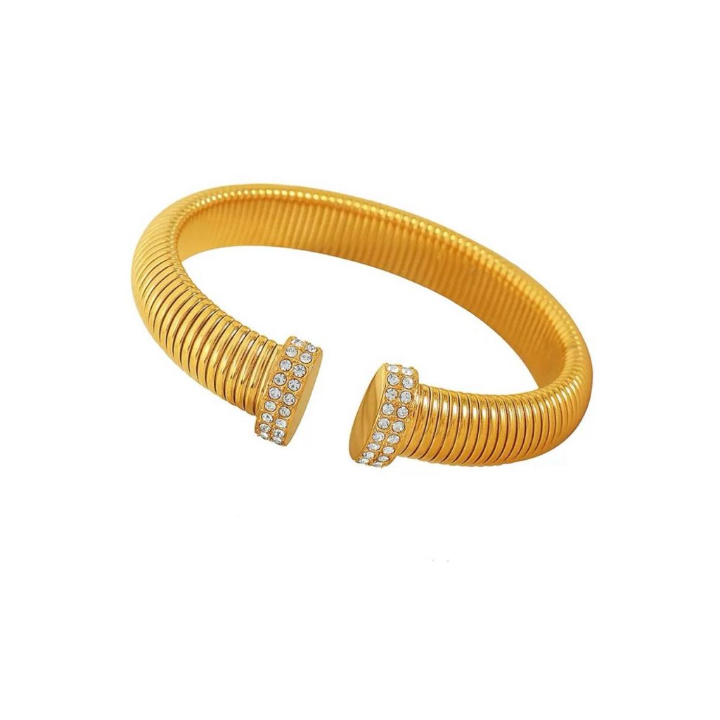 Il Bracciale Cleo 2.0 è realizzato in acciaio placcato oro garantisce durata e resistenza, non causa allergie, non si scurisce. Perfetto sia da solo che abbinato ad altri gioielli.