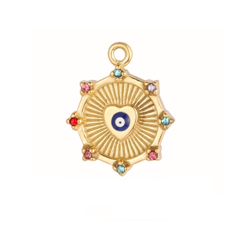 Charm Medaglione con Cuore e Zirconi in acciaio placcato oro