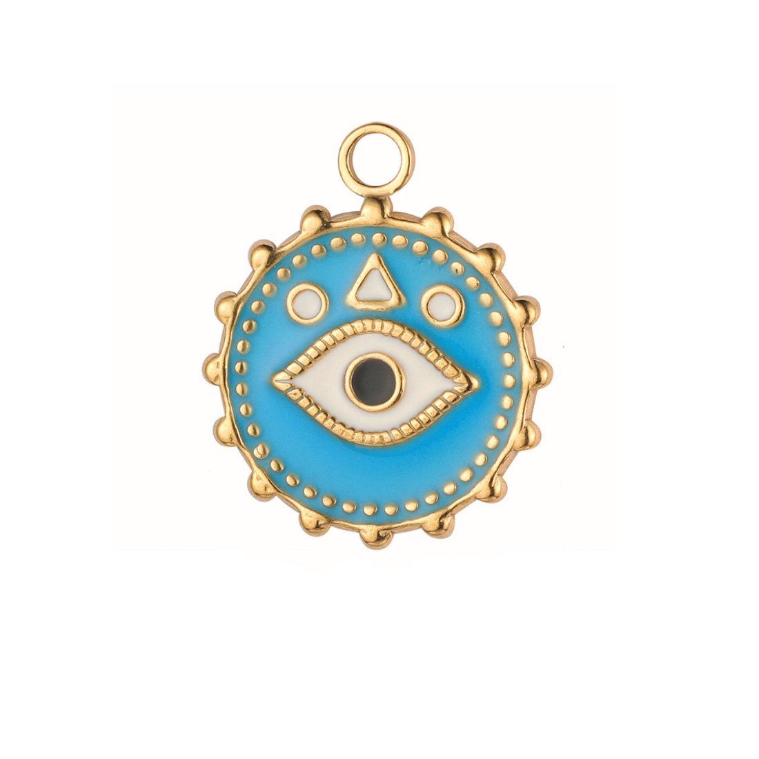 Charm Medaglione smaltato celeste in acciaio placcato oro