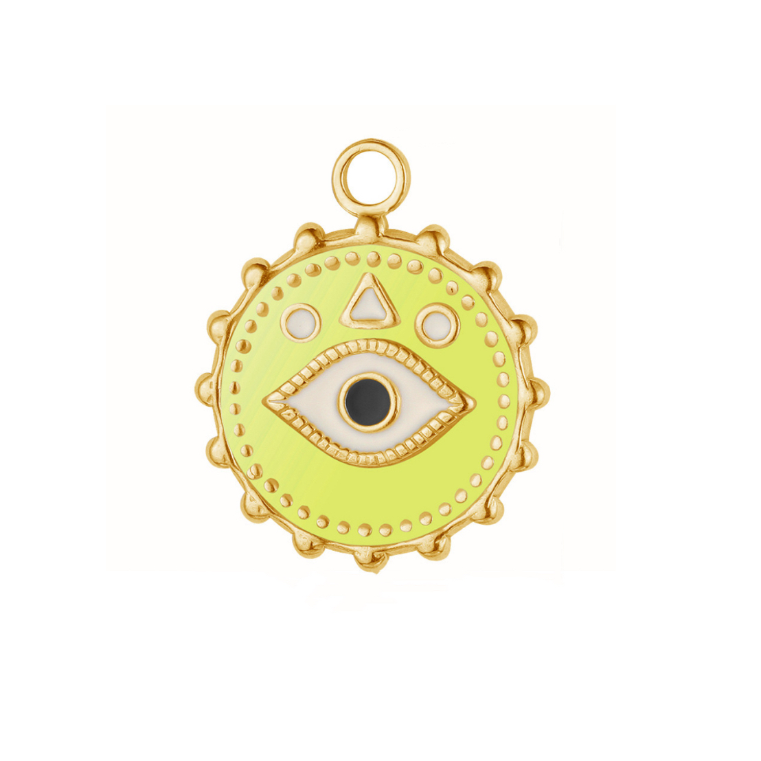 Charm Medaglione smaltato giallo in acciaio placcato oro