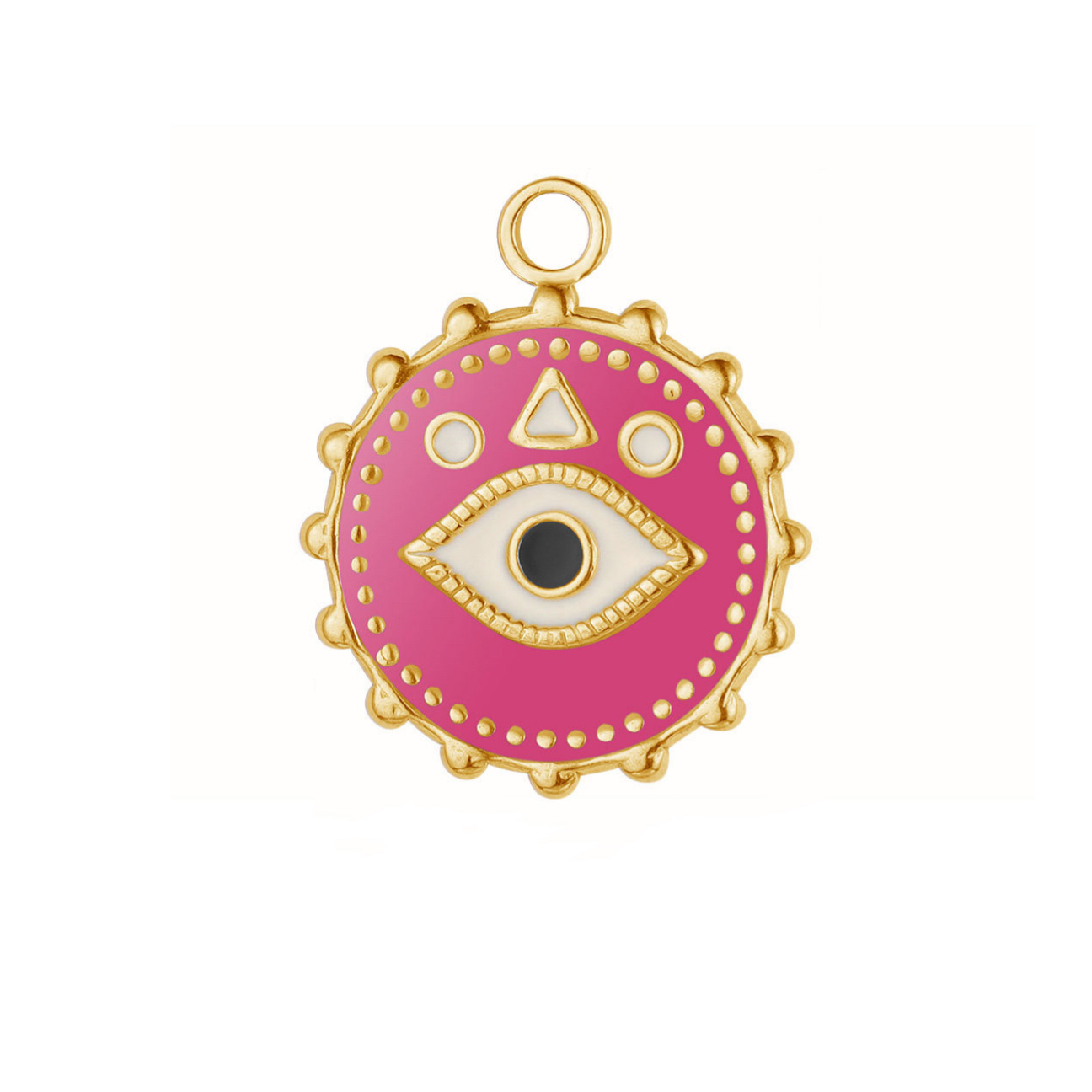 Charm Medaglione smaltato rosa in acciaio placcato oro