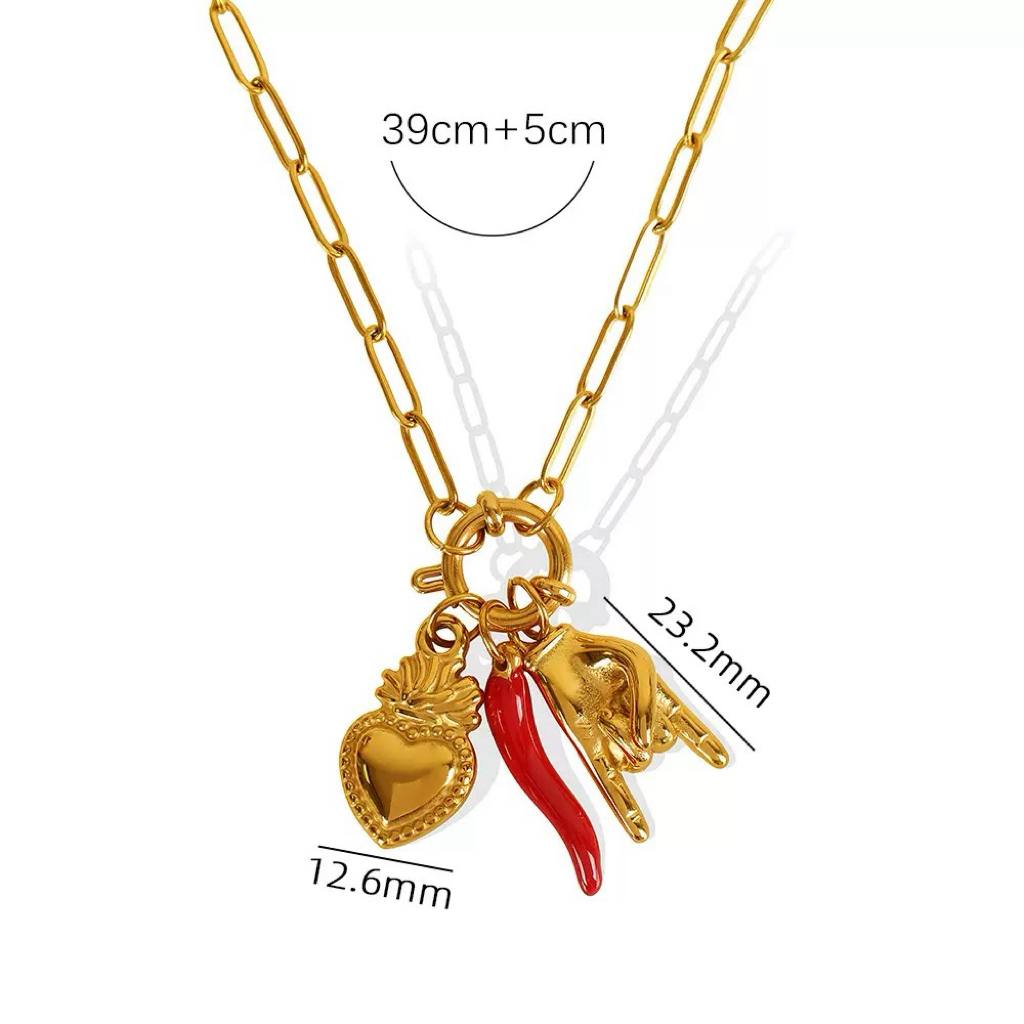 Collana Tris d’Amore, realizzata in acciaio inox placcato oro , non perde il colore, non si scurisce.
