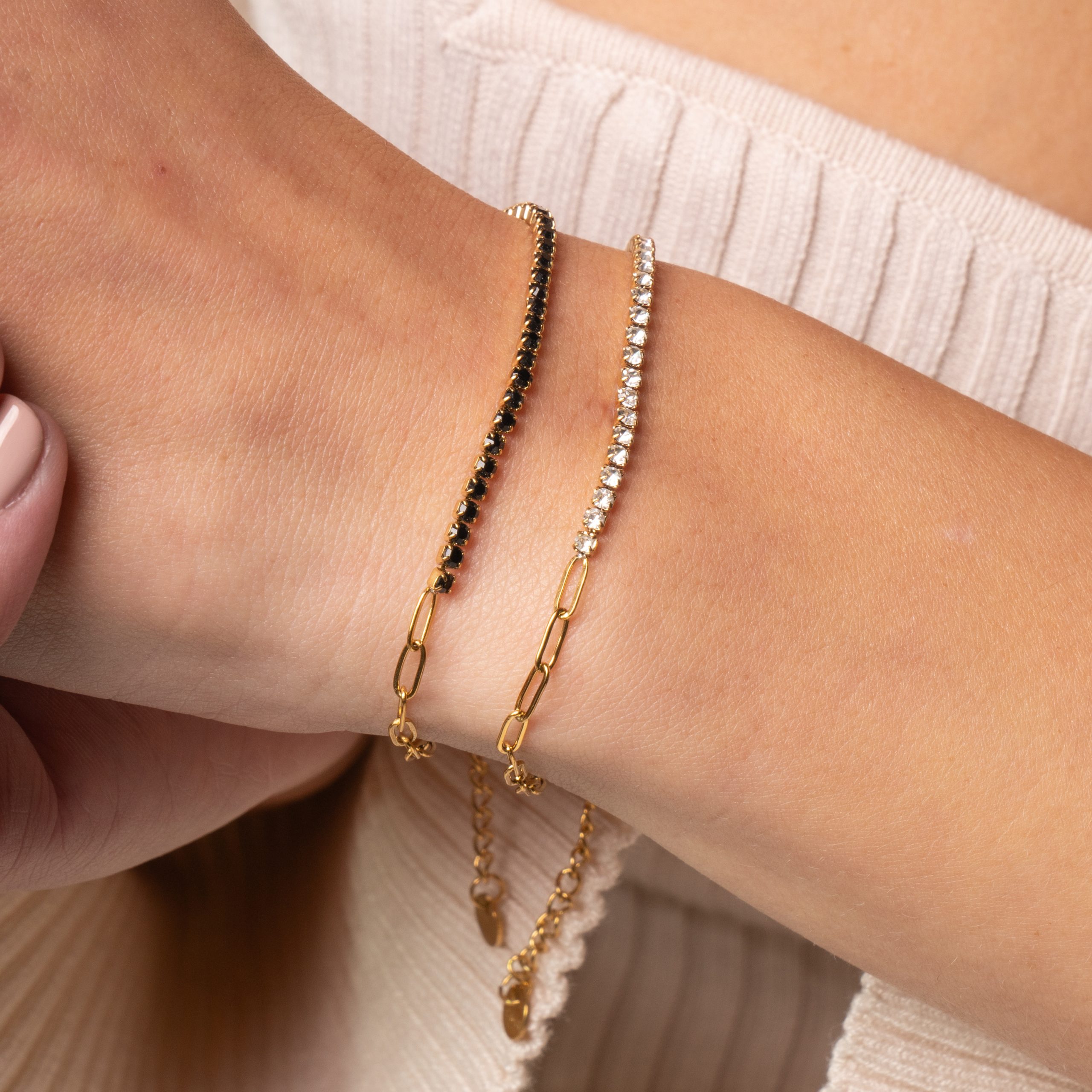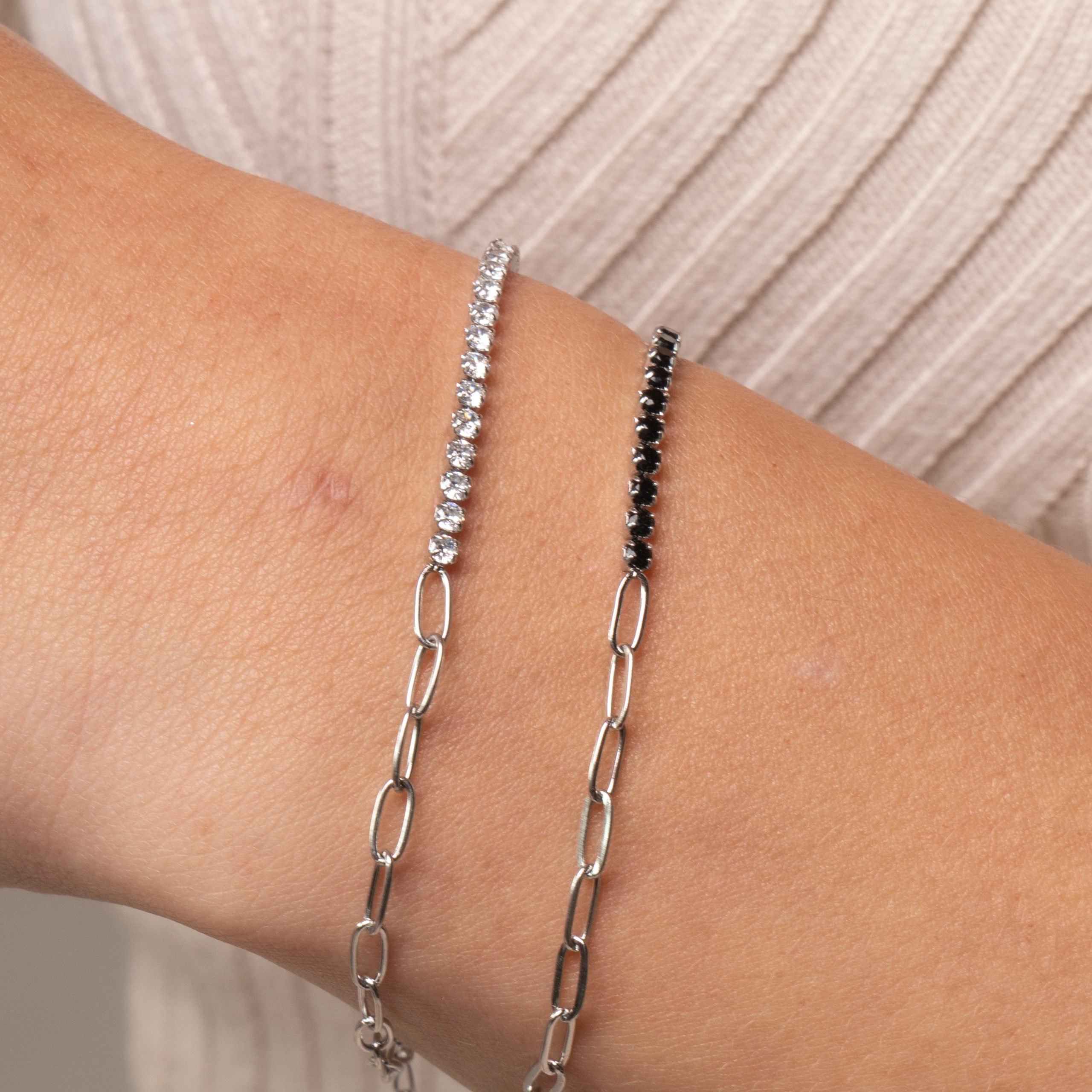 Half Tennis con Zirconi nero argentato