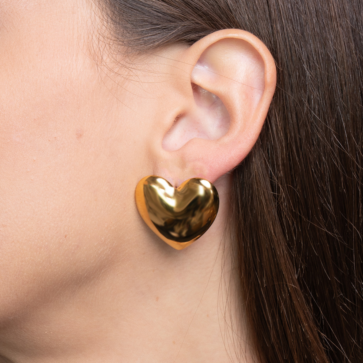 Gli Orecchini Button Heart della collezione BOLD sono un’esplosione di stile e personalità. Con la loro forma a cuore oversize e il design minimalista, questi orecchini in acciaio placcato oro 18 carati sono perfetti per chi ama distinguersi. Leggeri e comodi, aggiungono un tocco audace e femminile a qualsiasi look, senza passare inosservati. Realizzati con cura in Italia, sono ipoallergenici e privi di nichel, ideali anche per le pelli più sensibili.