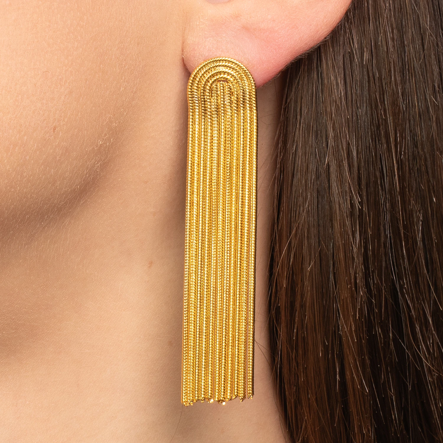 Orecchini Filamenti pendenti in acciaio placcato oro