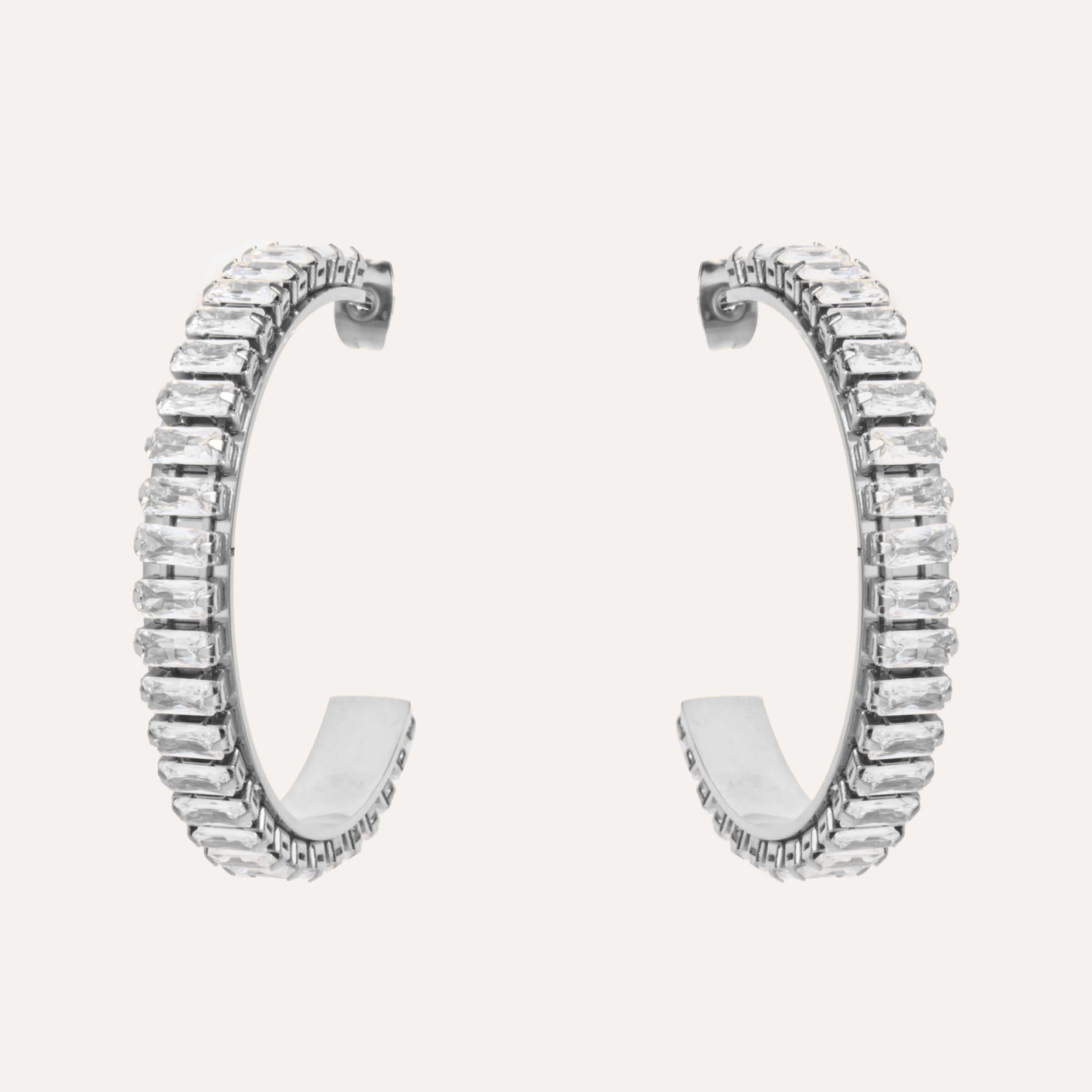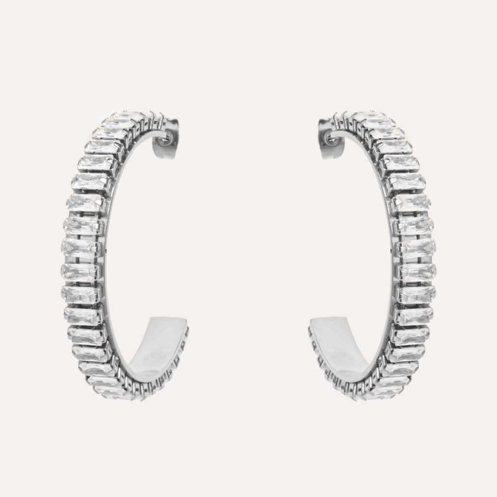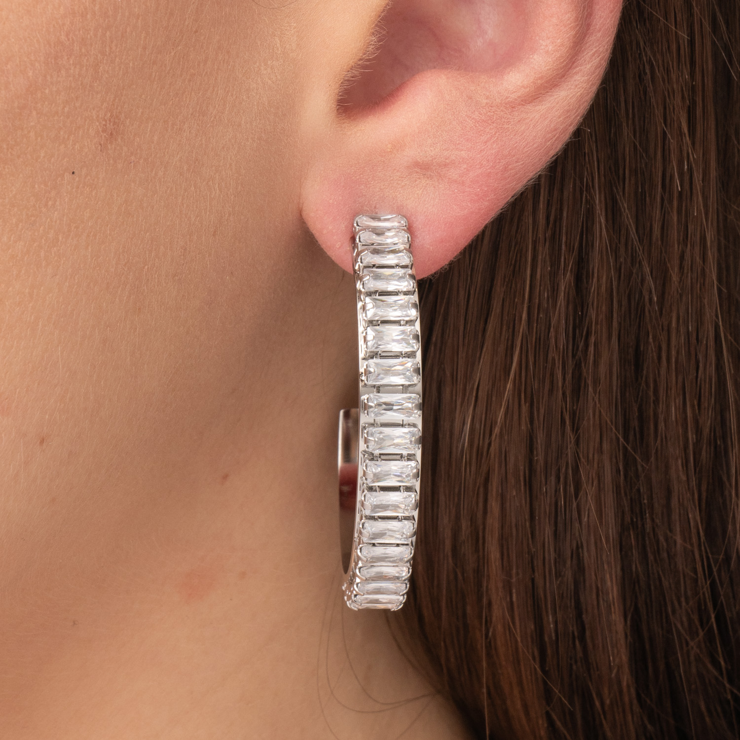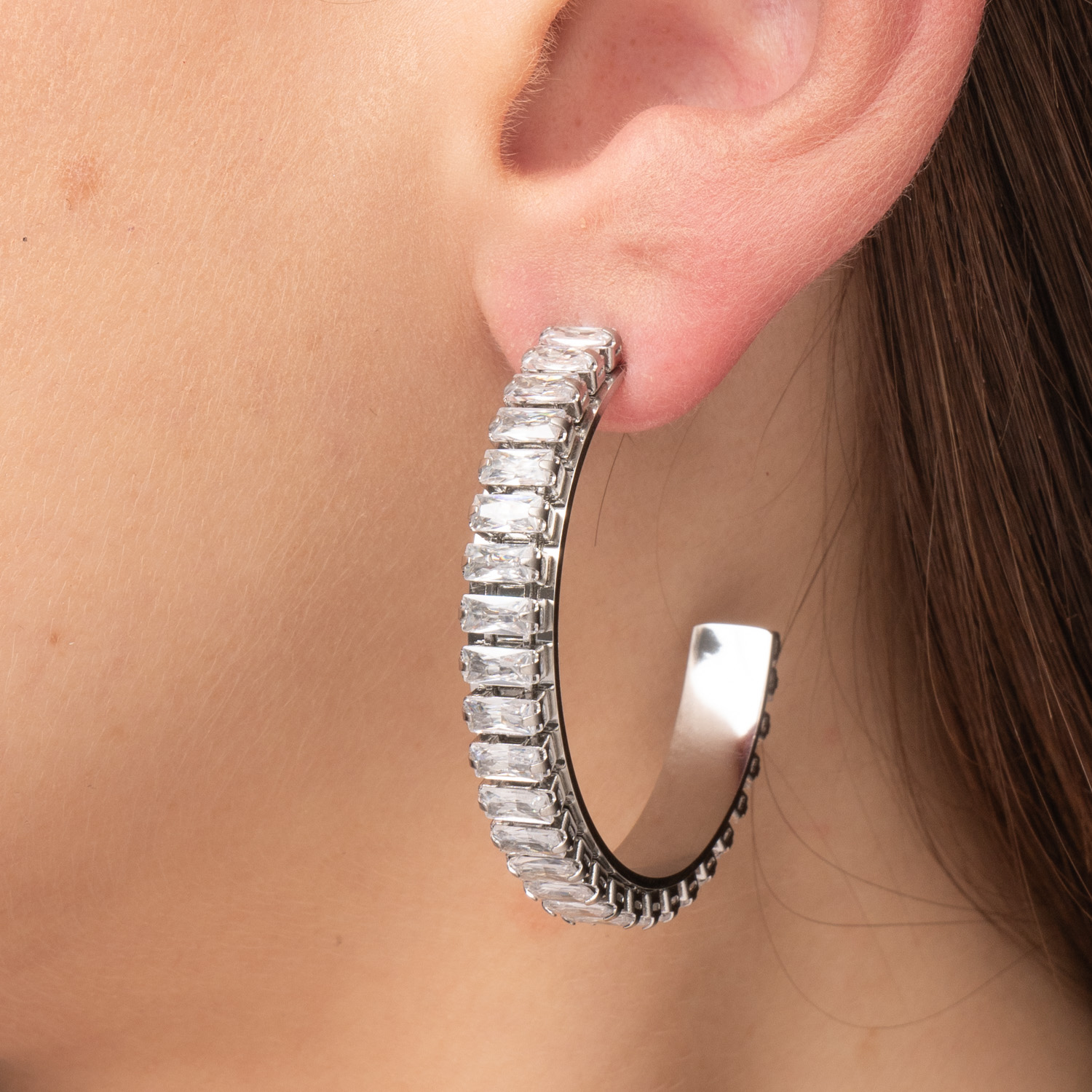 Orechini a cerchio Tennis con zirconi in Acciaio